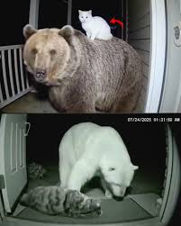But behind the humor was a real act of courage, however unplanned. Wildlife officers later explained that encounters between bears and small pets aren’t unheard of, especially during late summer when food is scarce. The bear had likely wandered close to a nearby cabin community looking for scraps. The cat, a missing pet named