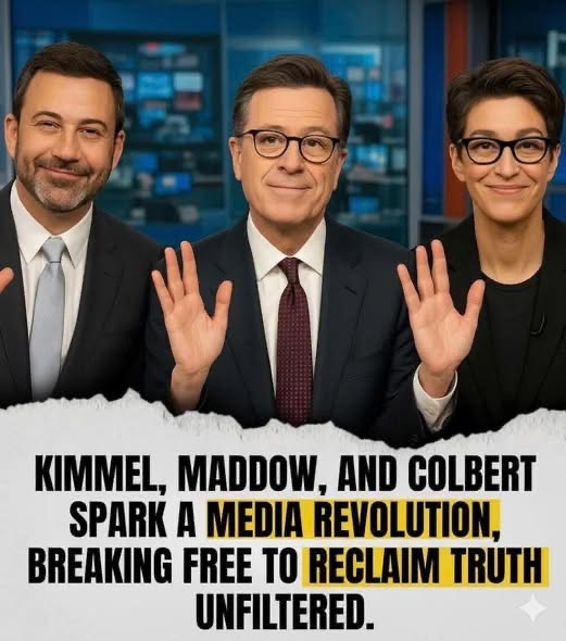 For decades, the nightly ritual of American news consumption has been a predictable affair. We tune in, we watch, and we largely accept the narrative presented by the friendly, familiar faces of late-night comedy and prime-time analysis. That predictable world was shattered this morning by an announcement so audacious, so utterly unprecedented, it sent a tremor of panic and exhilaration through the canyons of Manhattan and across the digital sphere. The biggest names in American media—Rachel Maddow, Stephen Colbert, and Jimmy Kimmel—have not merely quit their high-profile, multi-million dollar contracts; they have declared open warfare on the system that created them.