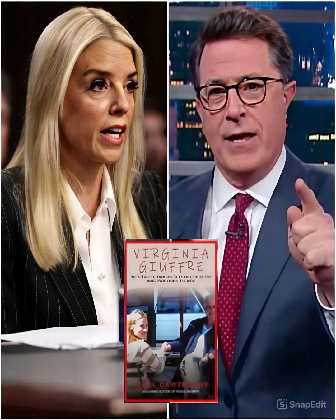 “I would encourage Pam Bondi to read Nobody’s Girl,” Colbert said, his tone calm but firm. “Maybe she’d understand why keeping those files sealed is not just bureaucratic — it’s moral cowardice.”