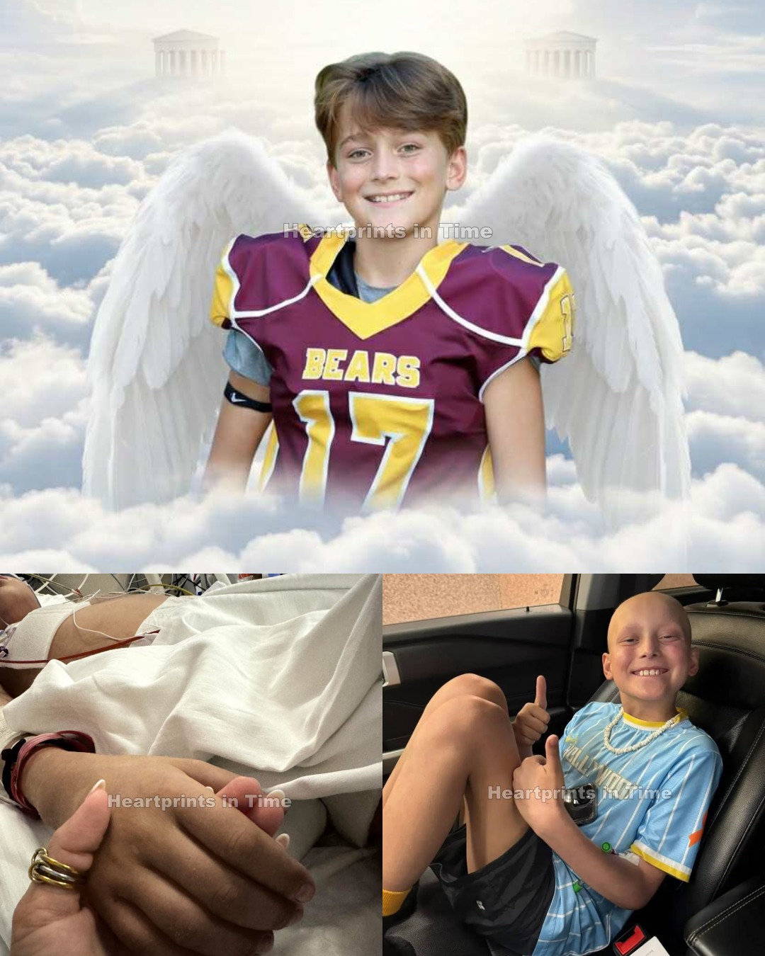 On 10/16/25, our brave, beautiful boy took his final breath and ran straight into the arms of Jesus — a boy far too perfect for this cruel world.”